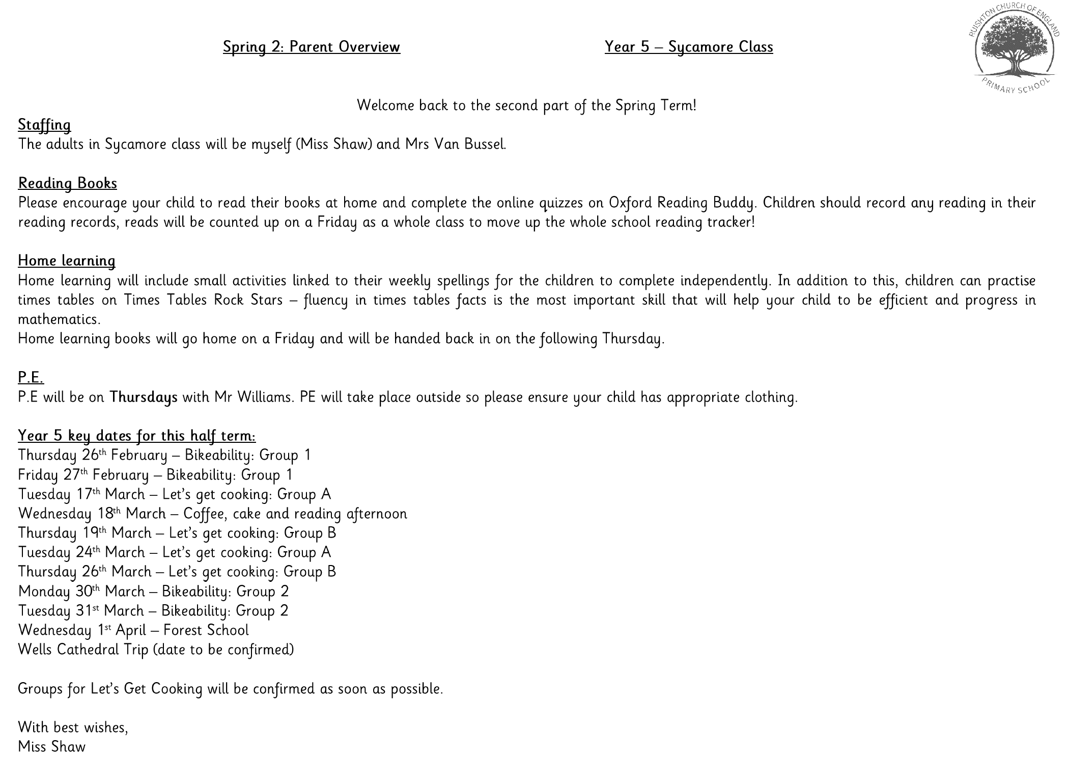 Welcome to Sycamore Class!